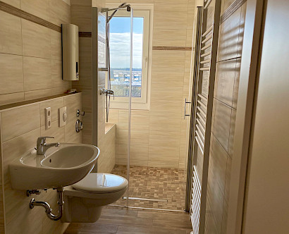 Wir sind Ihnen gerne bei folgenden Leistungen behilflich: Badumbau inklusive Einbau einer – nach Möglichkeit ebenerdigen – Dusche, Montage von zusätzlichen Handläufen, Aufstellung von Rollatorboxen im Bereich der Hauseingänge, Installation von Austrittsstufen für Balkone.